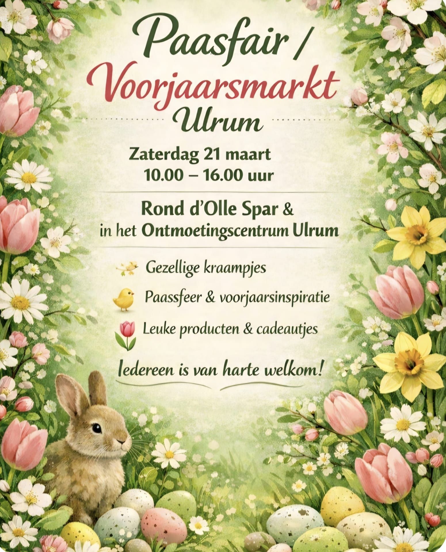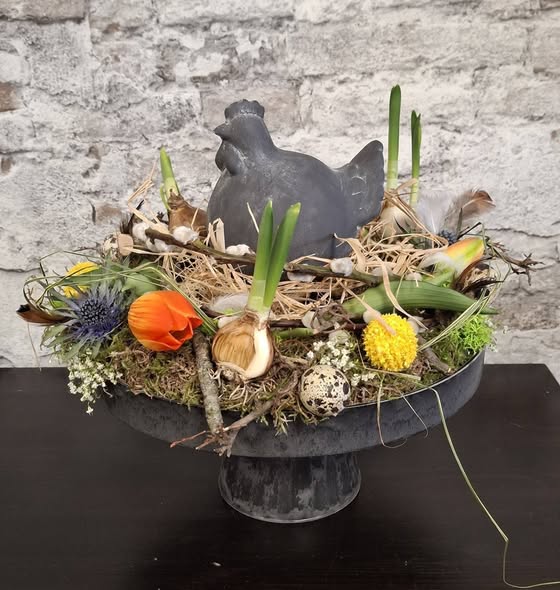 Dörpsstek Kerkstraat 12, Ulrum, GroningenEen prachtige Voorjaars Krans op een Etagere van melamine, die we ook zelf maken De krans wordt gemaakt van div. soorten vers groen, bolletjes, mos en word opgevrolijkt met kunsttulpjes. Kleur naar keuze. En dan nog de mooie Kip op Lees meer...